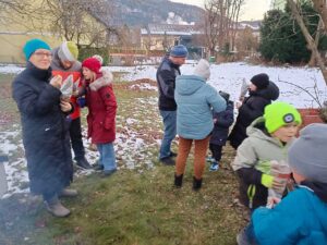 Im November haben wir die Eltern zum gemeinsamen Maroni – Braten eingeladen. Im Dezember befassen wir uns mit dem zentralen Ereignis, das zu Weihnachten gefeiert wird, mit dem Kommen des Retters der Welt. Die Kinder haben Kerzen kunstvoll verziert und beim letzten Treffen vor Weihnachten erzählen wir gemeinsam mit den Kindern die Geschichte der Geburt von Jesus, singen Loblieder und stellen Krippen her.